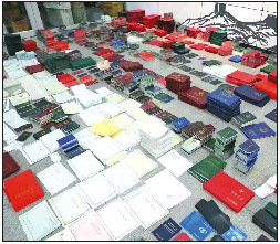 伪造国家机关公文印章的行为,一直是警方重点打击的对象。就在今年3月中下旬,山东沂源警方通过缜密侦查,成功破获一起特大制售假证章案件,打掉造假窝点2处,抓获犯罪嫌疑人3人。其间查扣的假印章、假证件等足足装了两卡车。