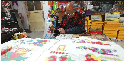 “比起其他一些非遗项目,杨家埠木版年画的现状还算理想。”杨付涛坐在他的工作台前告诉记者,这个小店虽不起眼,但一年能带给他四五十万元的收入。