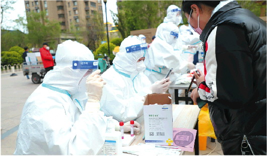 4月12日至13日,滨州市滨城区开展了新一轮全员核酸检测。记者报名成为滨城区市东街道文苑社区一名防疫志愿者,12日下午5点,被分配到香格里拉小区核酸检测点,进行信息采集工作(左二)。记者穿上防护服,变身“大白”,四小时核对几百人的名字,累到胳膊酸痛、声音沙哑。晚上9点半,核酸检测圆满完成,共采集样本2400余份。通过这次“沉浸式”体验,记者深深体会到“大白”们的累跟责任感。无数“大白”及其他疫情防控人员共同努力,守护了居民们的“健康绿码”。 齐鲁晚报记者 付玉成 边浩玥 通讯员 安晓东 摄影报道