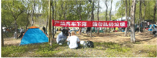 同时,该工作人员提醒游客,在玉符河岸边露营不能影响河道行洪,也不能破坏沿岸的人工草坪。