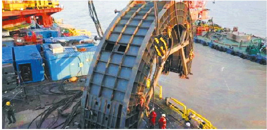 “长江口二号”古船整体迁移项目等比例试验现场。