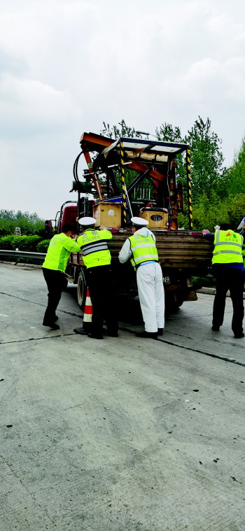 经了解,该车出现故障不能继续行驶,驾驶员面对这种情况却手足无措。考虑到匝道处车流量大,如果继续停在路中间等待救援会造成交通拥堵,为确保群众安全出行和及时为群众解困,执勤民警迅速在事发路段做好安全防护,指挥过往车辆安全避让,同时民警协同司乘人员一起徒手把车推下收费站进行修理,保障了道路安全畅通。