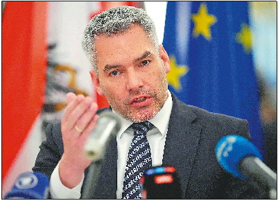 4月11日,奥地利总理内哈默在莫斯科与俄总统普京会晤后出席发布会。 新华/美联