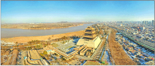 沿黄河逆流而上,一座棕褐色的仿古楼阁式建筑就坐落在黄河岸边。凭栏远眺,泺口古渡、铁路大桥等黄河地标一览无余,这就是济南黄河文化展览馆。大河之畔,泉城两岸的黄河文化已经蓬勃兴起,这座滔滔黄河水浸润的城市,正在用独特的魅力,向世界讲好黄河故事。