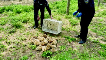 4月17日凌晨2时左右,赵寨子派出所巡逻民警在车巡至高唐县赵寨子镇张庙村东二干渠桥时,发现一辆白色轿车形迹可疑。盘查发现,车后备箱内有大量活体刺猬,头灯两个,红外线探测仪两部,钳子两把。经询问,车内人员王某、李某系夫妻,均系外地人员。二人于4月16日晚,由外县驾车窜至高唐,沿高唐县马颊河两岸,利用夜间照明行猎的方式非法猎捕活体刺猬71只。民警在固定证据后,第一时间将71只活体刺猬放回大自然。