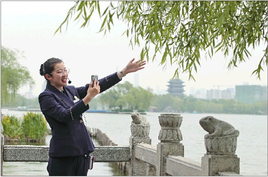 “来趵突泉聆听泉水叮咚,到大明湖览湖光山色,在护城河感受古城文化……”济南80后女子许琪颖是一名导游,更是泉城文化“推介官”,她从心里热爱济南,更努力通过“线下+线上”双游览模式,让每位来过、没来过济南的游客都爱上这里。