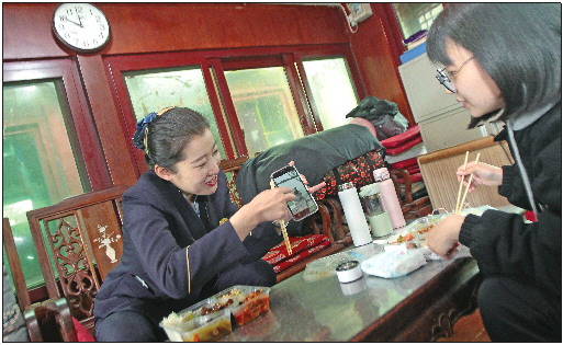▼许琪颖在午饭时和同事探讨接下来要直播的内容。