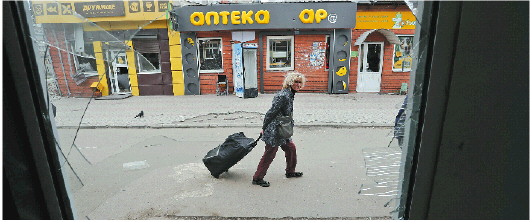 4月19日,在马里乌波尔,当地居民从被损坏的建筑旁走过。 新华社发