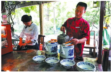 其实,大碗茶早有典故。四大名著《水浒传》中有一章《王婆贪贿说风情,郓哥不忿闹茶肆》,那位给西门大官人拉皮条的王婆开了个茶肆,兜售的便是大碗茶,另配上松子、核桃仁之类的点心。