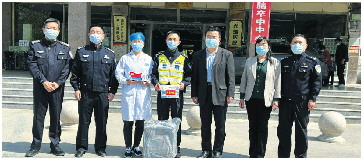 近日,长清区交警大队大队长潘旭光一行来到长清区中医医院,慰问奋战在抗击疫情最前沿的警医家庭,为他们舍小家、为大家,克服困难,始终坚守在疫情防控第一线,贡献自己的全部力量的精神点赞。考虑到当前形势和警医忙于工作的实际情况,潘旭光专门联系制作了“最美家庭”纪念奖杯,带着防疫物品、手提箱等慰问物品,在副大队长韩建东、杜军的陪同下,来到区中医医院对奋战在防控一线的警医家庭看望慰问。长清区中医医院党总支书记、院长李盛长,副院长张承莲陪同慰问。