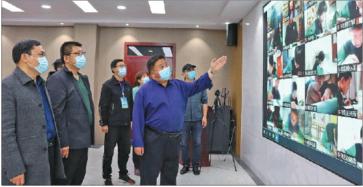 长清区实验中学党总支书记、校长孙广益带领学校督查组巡视线上教学。