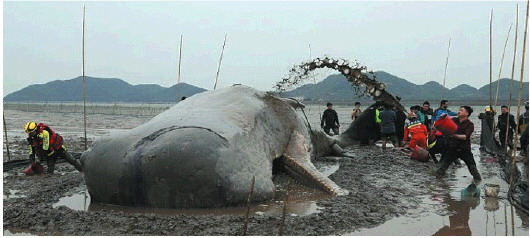 2021年7月6日,浙江台州临海头门港出现12头瓜头鲸集体搁浅事件。经过数十小时紧张救援,6头鲸被成功放生,5头不幸死亡。2021年2月,大连市长兴岛海域发现一头搁浅死亡的抹香鲸,这头鲸全长17.5米,重量超过30吨,是有记录以来抹香鲸首次出现在渤海海域。
