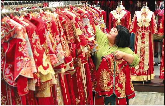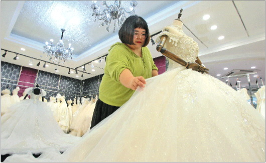 如今,瘦瘦经营“大码婚纱”店已是第三个年头,每逢结婚旺季,店里平均每天能接待三四十对顾客,要忙十二三个小时,经常忙到凌晨才能休息。从最初的几件婚纱到如今的上千件各种款式的婚服,瘦瘦见证了上万名胖女孩儿从自卑变得自信,穿上美丽合体的婚纱步入婚姻的殿堂。如瘦瘦所愿,胖女孩儿也可以拥有爱情,做最自信最美丽的新娘。