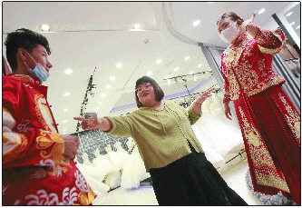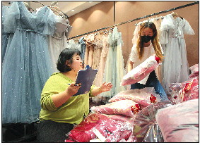 ▲杜瘦瘦为从云南专程赶来的顾客精心搭配婚服。