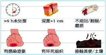 超过6岁的,从最后一剂破伤风疫苗算起,污染的伤口5年内,清洁伤口10年内,无需破伤风免疫处理。除此之外,下列三种情况,需要做以下处理: