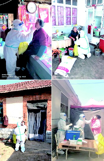 市北区人民医院接到上级支援莱西核酸采样保障工作紧急通知后,克服自身人员紧张等诸多困难,立即抽派5名年富力强医护人员参与采样支援队。该院5名采样队员不惧艰险、勇敢逆行,每天早上五点起床,六点乘车赶赴各个接应点,穿梭于莱西市的7个街道35个村庄、16个小区、2个养老院及厂企等。采样队员身着密不透风防护服长时间连续作战难免出现中暑症状,他们自行短暂休整便又投入到紧张忙碌之中。经过21天奋战,共计完成采样27275人次,其中入户采样1278人次,践行了“初心如磐,逆行无悔”的誓言。