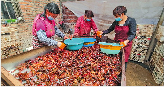 仇广东收上来的小龙虾,也有一部分到了梁亚伟的小龙虾加工厂里。