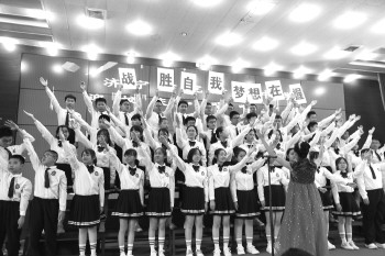 伴随着昂扬的旋律,同学们精神奕奕,引吭高歌。他们自信而充满青春的风采,歌声整齐划一、铿锵有力,彰显了少年之朝气、蓬勃之生机。在演唱校歌的同时,16个班级还带来了专属他们的班歌。无论是《仰望星空》对未来的憧憬与展望,《送你一朵小红花》对生命的执着,《我们都是追梦人》对理想的追逐和拼搏的勇气……都展现出各班乐观、积极、不畏困难、团结友爱的良好班风。