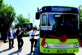 本报5月26日(记者 李旭旭 通讯员 赵俊国)“今天真是个好日子,没想到公交车竟然通到了咱村里,我可以自己坐公交车去城里看孙子了。”5月26日一早,峡山区岞山街道久远埠村的陈大爷便来到村里的公交站点。早上7点30分,在村民的欢声笑语里,峡山区第一趟X5路公交车缓缓驶入,全村期盼已久的公交车,终于在“第一书记”贾胜峰的不懈努力下开通了。