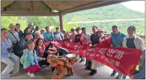 25日上午,在石崮寨景区,志愿者一路欢声笑语,或登高望远,或曲径探幽,在轻松和愉悦中享受徐徐凉风吹过的惬意,放松平日紧张忙碌的身心。“折一根柳枝跟你走,把春色带到天尽头。”志愿者周荣江望景而歌,其他人也跟着唱了起来,清脆洪亮的歌声在山中回荡。