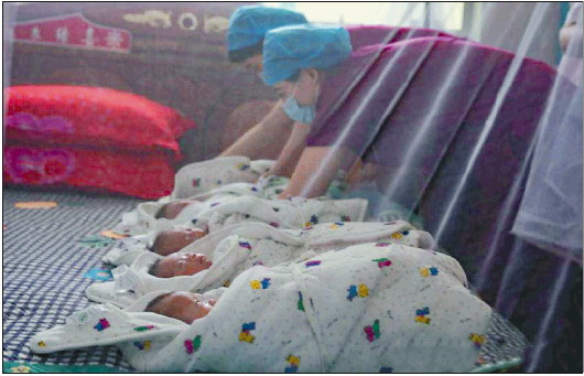 6名医护人员把五胞胎小心翼翼地放在卧室床上,向孩子的妈妈交代好喂奶时间后,依依不舍地离开。此时的五胞胎并排躺在自家床上,好奇地睁大眼睛环视着陌生而温馨的环境。