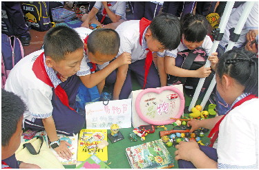 “每年的易物节我都很期待,我会提前了解商品价格去‘进货’,还会到别的摊位讲价,了解其他同学的促销手段。在这个过程中,我也理解了赚钱的辛苦。”六年级二班朱浩宇同学说。