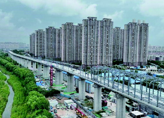 5月25日,在中铁十局黄东联络线施工现场,建筑工人正在热火朝天地进行全封闭声屏障施工,标志着济南黄东联络线的“隔音隧道”正式开建。