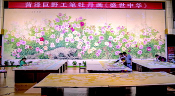 2018年以来,工笔画牡丹硕果不断,《花开盛世》、《锦绣春光》、《冠艳群芳》、《国宝献瑞》、《盛世中华》等作品,先后亮相上合青岛峰会、中国国际进口博览会、中国东盟博览会、中国林产品交易会、中国国际文化旅游博览会等重大活动以及人民大会堂山东厅、国家会议中心国礼展厅等重要场馆,不仅展示了巨野工笔牡丹画的艺术魅力,还向世界展示了中国农民的文化自信。
