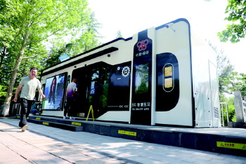实际上,这些高大上的功能还不是这座5G公厕最大的亮点,维护经理朱春林介绍,这座公厕不需要土建工程、无需建设下水管网和化粪池,排泄物经过微生物降解技术、智能传感控制、高温消杀和干燥技术处理后将转变为二氧化碳、水和有机生态肥料的原料,经有机肥料厂加工处理后,可以送往农场和种植基地,实现绿色循环。朱春林说,按照传统水冲厕所每次使用大约5L水的标准,“5G公厕”排便后无需冲水,每1000人使用每天可节约4至5吨水。智慧碳中和公厕占地小、建设快、安装方便,安装仅需3天时间,综合成本比传统公厕低20%以上。而且可以随时移动,对地面环境要求非常低,只要有一个平台就可以安装。