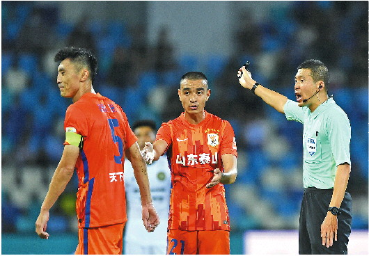 郑铮(左)被追加停赛,打乱了泰山队的备战部署。 IC photo