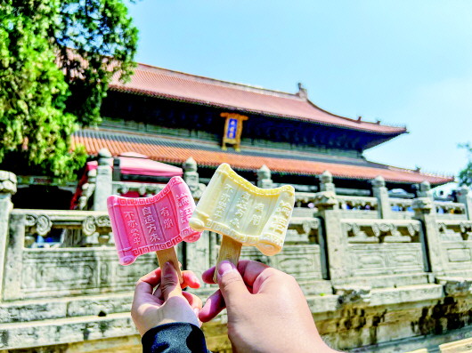 三孔景区则重点在文创产品方面下足了力气。以文创雪糕为例,三孔景区“大成殿”款雪糕与历史建筑造型融合,雪糕完整还原建筑,造型十分精美,备受游客喜爱。黄色款的“诗礼银杏口味”雪糕,造型出自孔庙诗礼堂,蕴藏着孔子教育儿子孔鲤学《诗》学《礼》的典故。今年,三孔景区又新推出了“论语”款雪糕,竹简造型上刻着“有朋自远方来,不亦乐乎”的字样。这些文创雪糕承载了景区的审美与文化,在带动文旅消费的同时,也让三孔文化走入了游客心里。