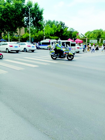 陈士军载着考生一路疾驰,全程仅3分钟,就将考生平安送至考点。看着考生顺利走进考场,陈士军悬着的心才放下,回到自己的岗位继续护考。