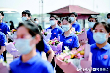 白衣执甲逆行出征,盛夏载誉英雄归来。6月8日上午,在日照世帆赛基地,日照市举行了支援上海抗疫医疗队凯旋仪式。鲜花、掌声、拥抱……时隔60多天再次相见,62名援沪归来的医疗队员们和自己的同事、家人紧紧相拥,凯旋仪式现场感动满满。