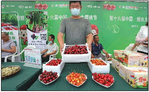 6月3日,第十六届中国烟台大樱桃节上,赵阳春的大樱桃很抢手。