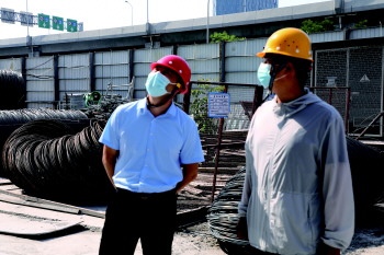 目前,现场工人在进行主楼楼内二次结构施工,屋面施工,南侧独栋办公主体结构施工(钢筋绑扎、混凝土浇筑)。刘继峥介绍,7栋高层均已封顶,下一步项目将聚焦在外幕墙施工,机电安装,在项目建设的同时,推进销售及招商工作。