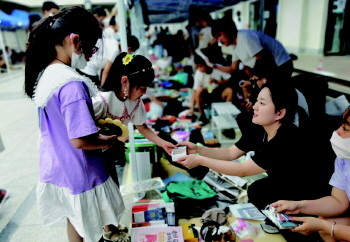 临近毕业,跳蚤市场在哈尔滨工业大学威海校区的大学生服务区火热开场。书籍、衣物、球拍、化妆品、日用品摆满现场,吸引了在校生、教职工及家属前来“淘宝”。