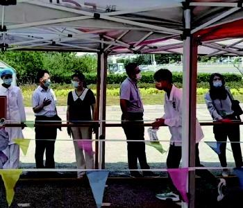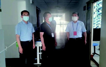 ▲图为派驻第三纪检监察组到新一中考点现场,督导疫情防控情况。