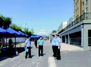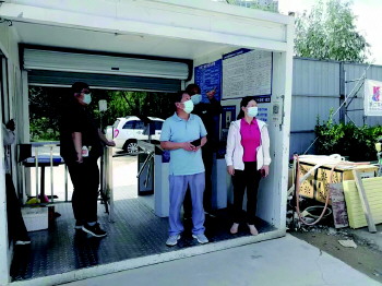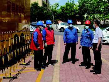 ▲图为派驻第七纪检监察组到考点附近建筑工地,查看高考期间停工情况。