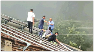 众多茶叶商户主动登上仓库屋顶参与救援。