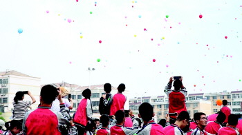 全体同学在气球上写下自己心愿和祝福并放飞,气球承载着他们的梦想扬帆远航。