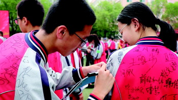 校服上签名留下纪念。