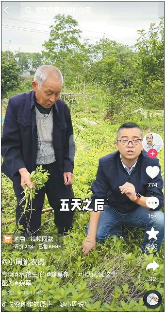 周昌南希望为农民多做点事,这也是他实现自我价值的一种方式。如今,通过线上知识传播,农业科普的效率显著提高。比如,过去周昌南开一场农民会,能教50个人,1万场也就惠及50万人。但在抖音上,他有150万粉丝,受众面大大被拓宽。春耕时分,他要想推广一个技术方案,三两天便能通过抖音精准抵达用户。