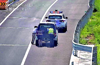 6月18日,在荣潍高速135km处,一辆鲁A牌照的吉普车在高速行驶过程中水箱“开锅”,无法启动。烟台高速交警支队莱阳大队民警及时发现并化身“推车工”相助,与车上人员合力将车推至附近服务区。