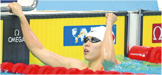 决赛中,她从一开始就游得十分兴奋,一直处于领先状态,并且在最后50米顶住了澳大利亚选手奥卡拉汉的冲击,将优势保持到了终点。第一个触壁,拿到了这枚宝贵的金牌,她把标准的“前冲后顶”战术贯彻得淋漓尽致。
