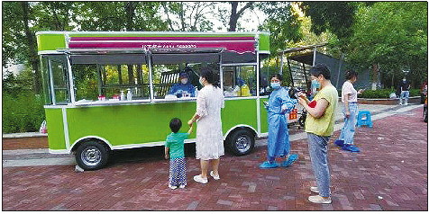 近日,记者在济南市市中区十六里河街道秀泉社区的核酸检测点上看到了一辆特别的核酸检测车,它外形似路边的餐车,顶上却伸出了长长的雨棚。一位“大白”坐在车内,从窗户里伸出双手为排队的居民们做着核酸检测。记者从附近居民的口中了解到,这辆特别的核酸检测车,是一位热心居民捐赠的。