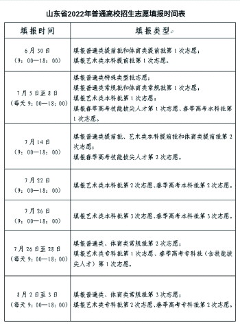 山东省2022年高考共有7次志愿填报时间,8月3日最后一次志愿填报结束