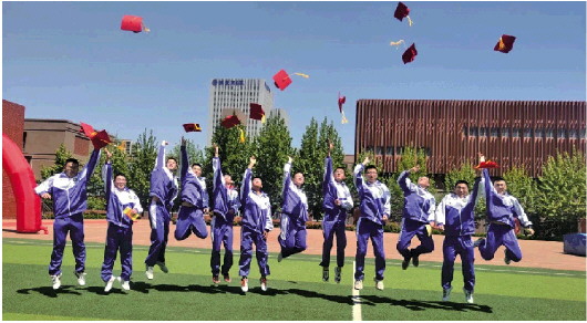 今年高考前夕,济南中学唐冶校区的操场上,高三同学正在热闹地进行集体“蹲萝卜蹲”、“过状元桥”等游戏。一时间,呐喊声、加油声、嬉笑声响彻整个校园。除了放松游戏,还有多项师生合作拓展项目,老师们被学生点名做俯卧撑、表演节目等,学生都开玩笑道,终于有合理的理由来“报复”自己的严厉老师了。游戏结束后,全体高三同学手挽手,雄姿英发,迈向红毯,依次穿过写有“感恩门”“成人门”“成才门”“成功门”的四扇红色拱门,整个活动被推向高潮。