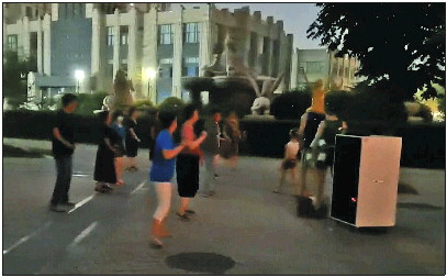 7月3日晚,伴随着一阵阵音乐响起,在济南市历城区名辉豪庭北侧广场上,不少广场舞爱好者像往常一样自觉地列队,跟随音乐声翩翩起舞。