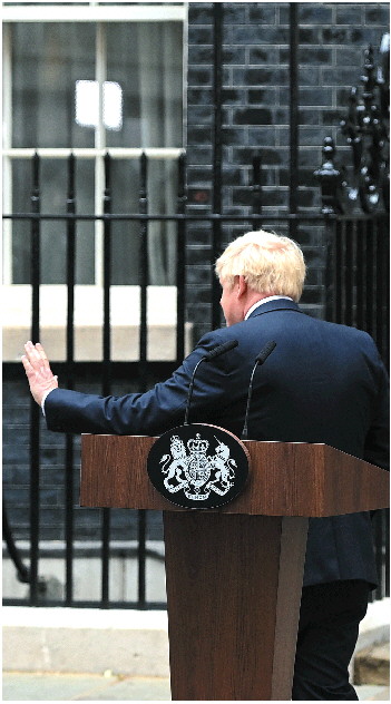 据报道,约翰逊在唐宁街10号外发表讲话称,“议会保守党的意愿很清晰,现在该党(保守党)需要一位新的党魁,并成为英国首相了。”