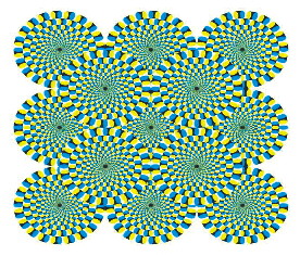 这些图片到底能否测试心理压力?仔细观察就会发现,这些图片虽然形式各异,“运动”方式也不相同,但无论旋转游移也好,滚动起伏也罢,其原理,都是一种叫“周边漂移错觉”的视觉假象。研究表明,不能察觉“周边漂移错觉”的情况,在人群中只占约5%。